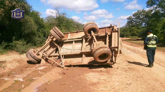 Poco antes del mediodía del viernes, efectivos policiales verificaron un siniestro vial ocurrió a 5 kilómetros de la localidad de Los Blancos sobre Ruta Yacimiento Palmar Largo, siendo protagonizado por una camioneta con acoplado cuyo chofer habría efectuado una maniobra por el mal estado del camino y volcó resultando lesionado un bebe de un año y cuatro meses.